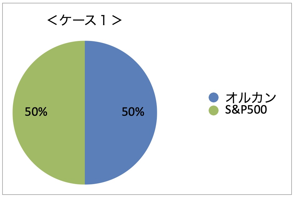 このケースをポートフォリオにすると左のようになります。シンプル過ぎてポートフォリオとも言えないほどです。でも、これは「リスクを抑えて、極力資産を増やす」という目的に合致したポートフォリオなのです。