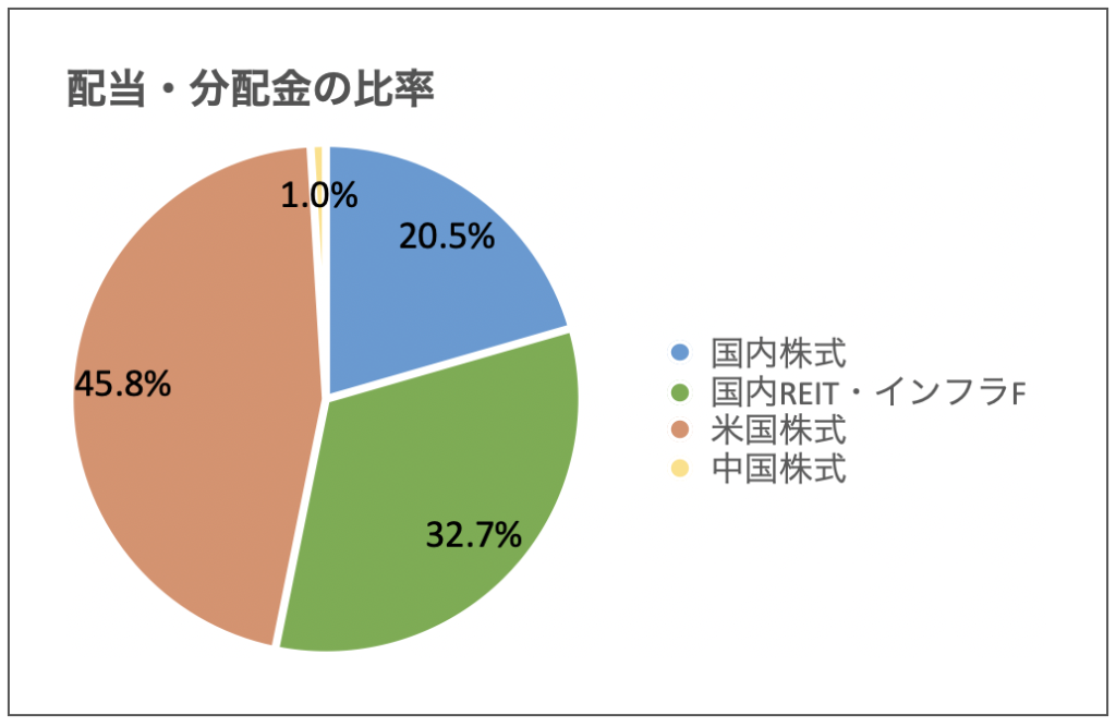 配当・分配金を持ち株のカテゴリー別に仕分けすると以下のようになります。