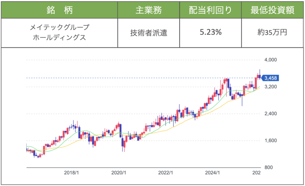 個別株の選択は好みもあるため推奨するワケではありませんが、イメージで言うと以下のような企業になります。(配当利回りと最低投資額は2026年2月1日現在)