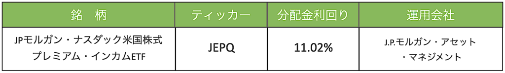 米国高配当ETFの中でも、コールオプションを用いた「カバード・コールETF」に分類される商品です。カバード・コールETFはいくつかありますが、J.P.モルガンの商品は分配金利回りだけでなく、株価の上昇を考慮して運用してくれているので安心です。筆者の高配当株投資のポートフォリオの中では、ドジャースの山本由伸並みのエースです。